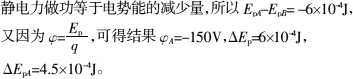 答案:(1)-150 V (2)6×10-4 J (3)4.5×10-4 J 提示 |