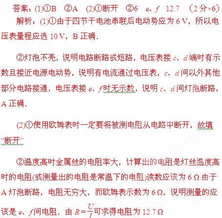 ②测得c、d间电压约为5.8 V,e、f间电压为0,则故障是________;