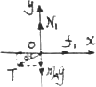 ∵A静止,受力平衡 ∴在x轴上:Tcos=f1;① 在y轴上:N1=Tsin+mAg;② 又∵f1=μ1N1;③ ∴由①②③得:T=100 N (2)对物体B受力分析及建立直角坐标系,如图所示: