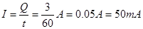 一分钟内通过某导体横截面的电量是3C,导体中的电流是多少毫安?