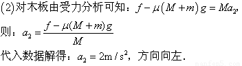 【解析】设人的质量为m,加速度为a1,木板的质量为M,加速度为a2,人对木板的摩擦力为f.则对人有:f=ma1=200N,方向向右.