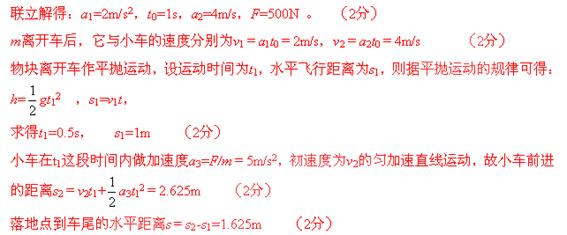 设车的加速度为a2,对于车,则F-μmg=Ma2 。 (1分)