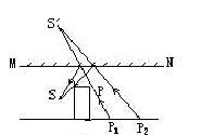 MN为一平面镜,P为一不透光的障碍物,人眼在S处,试用作图法画出人通过平面镜能看到箱子左侧多大范围的地面。要求画出所有必要光线的光路图,并在直线CD上用AB线段标出范围。