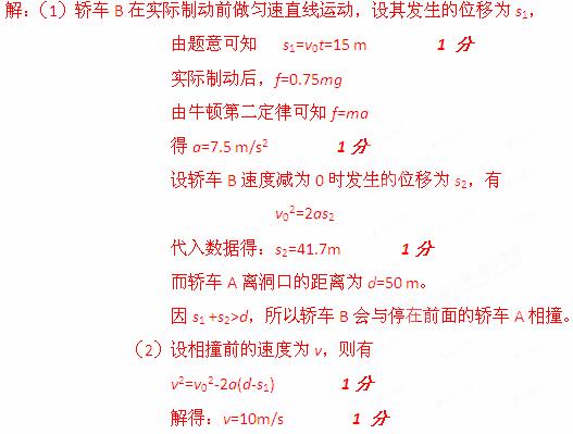 (1)试通过计算说明轿车B是否会与停在前面的货车A相撞?