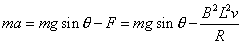 重力mg,竖直向下 支撑力N,垂直斜面向上 安培力F,沿斜面向上 (2)当ab杆速度为v时,感应电动势E=BLv,此时电路电流 ab杆受到安培力 根据牛顿运动定律,有
