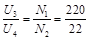 本题考查的是理想变压器的基本规律,即原、副线圈的电压之比等于匝数之比。