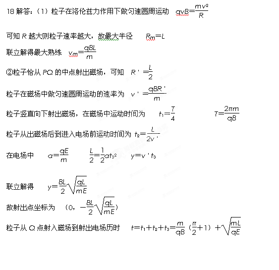 (2)若一粒子恰从PQ的中点射出磁场,求该粒子射出电场时的位置坐标![]()
