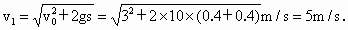 抛出的物体只受重力,可一直取向上的方向为正方向,取整个过程分析,也可分段研究. 解法一:设到达抛出点上方 0.4m处时还能上升高度s则 据题意,物体相当于从 s=0.45m+0.4×2m=1.25m高处自由下落,所求速度解法二:设位移 则: 代入数据解得 解法三:由运动的上升与下降过程的对称性可知,物体回落到抛出点上方 0.4m处时,速度为3m/s,方向竖直向下,以此点为起点,物体做竖直下抛运动,从此点开始到原抛出点下方0.4m处的位移为s=(0.4+0.4)m=0.8m,那么所求的速度为这段时间的末速度,即:
