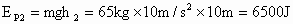 一同学从水平地面开始快速爬到10m高的楼顶上,假设其质量为65kg,历时1min,以地面为零势能参考平面,则其初、末状态的重力势能分别是多少?这个过程中重力做了多少功?