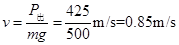 (1)550W 425 (2)0.85m/s