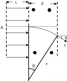 如图所示,左侧匀强电场的区域宽度为L,电场强度为E,右侧匀强磁场的左右宽度为d,磁场的上下区域很长,一质量为m、带电量为q的粒子,从电场的左边界A点静止释放,经电场加速后垂直进入磁场,出磁场时与入射方向的偏角为θ.(不计粒子重力)求:(1)粒子离开电场时的速度;