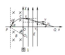 轨迹如图1交y轴于C点,过P点作v的垂线交y轴于O1点,