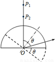 解:由题意可知,当玻璃砖转过某一角度θ时,刚好发生全反射,在直径边一侧观察不到P1、P2的像.做出如图所示的光路图,可知,测出玻璃直径边转过的角度θ,则法线转过的角度也为θ,玻璃砖内入射角为θ,临界角为θ,则:n=
