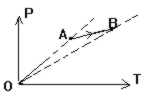 解: 过原点O, 连接OB, 由题意可知: TA<TB, VA<VB 根据热力学第一定律 △E=W+Q 温度升高, 内能增加. 气体体积膨胀, 对外做功, 气体从外界吸热. 气体吸热等于内能的增加和气体对外做功.