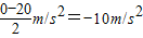 答:(1)汽车刹车时的加速度为-10m/s2.