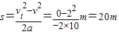 2、刹车后速度减为零,根据速度与位移的关系公式代入数据计算即可.