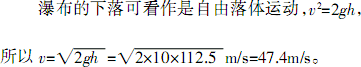112.5 m.假若瀑布上方水的流速为零,则瀑布冲击下方水面的速度约为14 m/s