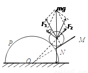 ÊÔÌâ·ÖÎö£º»³öСÇòµÄÊÜÁ¦Í¼ÈçÏÂͼËùʾ£¬½¨Á¢Æ½ÐÐËıßÐΣ¬¸ù¾Ýͼ¿É¿´³ö£¬ÓÃÍâÁ¦Ê¹MNÈÆOµã»ºÂýµØÄæÊ±Õëת¶¯Ê±£¬MN¶ÔQµÄµ¯Á¦F1Ò»Ö±¼õСÖÁÁ㣬P¡¢Q¼äµÄµ¯Á¦F2Ò»Ö±Ôö´ó£¬QËùÊܵĺÏÁ¦²»±ä¡£Ñ¡ÏîBCÕýÈ·¡£
