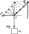【答案】分析:对O点受力分析,受到三个拉力,根据共点力平衡条件并运用合成法进行作图分析即可.