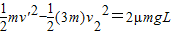 ÈçͼËùʾ£¬Ôڹ⻬ˮƽ×ÀÃæÉÏ·ÅÓг¤Ä¾°åC£¬CµÄÓÒ¶ËÓй̶¨µ²°åP£¬Ä¾°åCµÄ³¤¶ÈΪ2L£®ÁíÓÐСÎï¿éAºÍB¿ÉÒÔÔÚ³¤Ä¾°åÉÏ»¬¶¯£¬A¡¢CÖ®¼äºÍB¡¢CÖ®¼äµÄ¶¯Ä¦²ÁÒòÊýÏàͬ£¬A¡¢CÖ®¼äºÍB¡¢CÖ®¼äµÄ×î´ó¾²Ä¦²ÁÁ¦µÈÓÚ»¬¶¯Ä¦²ÁÁ¦£®A¡¢BµÄ³ß´çÒÔ¼°PµÄºñ¶È½Ô¿ÉºöÂÔ²»¼Æ£¬A¡¢B¡¢C£¨Á¬Í¬µ²°åP£©µÄÖÊÁ¿½ÔΪm£®£¨1£©ÈôC±»¹Ì¶¨ÔÚ×ÀÃæÉÏ£¬B¾²Ö¹·ÅÔÚľ°åCµÄÖÐÑ룬AÒÔ³õËÙ¶Èv£®´Ó×ó¶Ë³åÉÏľ°åC£¬Îï¿éA¸ÕºÃÄÜÅöµ½B£¬ÇóA¡¢CÖ®¼äµÄ¶¯Ä¦²ÁÒòÊý£®