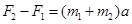 如图所示,两个物体质量分别为 m1 =1kg和m2=2kg,紧靠在一起并放在光滑水平面上,如果施以向右的水平力F1=2N和向左的水平力F2=5N,则m1与m2之间的相互作用力大小是 N。![]()