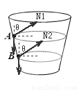 ÔÓ¼¼±íÑÝ¡°·É³µ×ß±Ú¡±µÄÑÝÔ±Æï×ÅĦÍгµ·ÉÊ»Ôڹ⻬µÄÔ²×¶ÐÎͲ±ÚÉÏ£¬Í²µÄÖáÏß´¹Ö±ÓÚË®Æ½Ãæ£¬Ô²×¶Í²¹Ì¶¨²»¶¯£¬ÑÝÔ±ºÍĦÍгµµÄ×ÜÖÊÁ¿Îªm£¬ÏȺóÔÚA¡¢BÁ½´¦½ôÌù×ÅÄÚ±Ú·Ö±ðÔÚͼÖÐÐéÏßËùʾµÄË®Æ½ÃæÄÚ×öÔÈËÙÔ²ÖÜÔ˶¯£¬ÔòÏÂÁÐ˵·¨²»ÕýÈ·µÄÊÇ£º