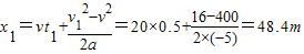 解答:解:(1)客车在前0.5s内的位移x1=vt1=20×0.5=10m