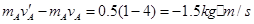 A、B两物体在光滑的水平面上发生碰撞,碰撞前后物体的运动都在同一条直线上。规定A物体原运动方向为正方向。A物体的质量