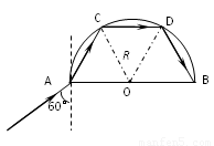 即此时光线折射后射到圆弧上的C点,在C点的入射角为60°,大于临界角,会发生全反射