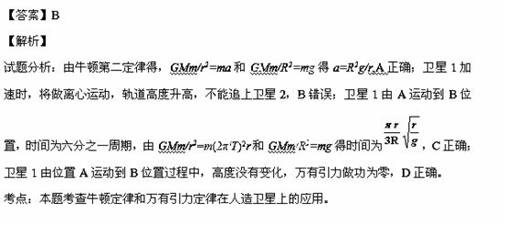 D£®ÎÀÐÇ1ÓÉλÖÃAÔ˶¯µ½Î»ÖÃBµÄ¹ý³ÌÖÐÍòÓÐÒýÁ¦×ö¹¦ÎªÁã