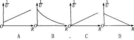 利用图所示电路可测出电压表的内阻,电源的内阻可以忽略.R为电阻箱,当R取不同阻值时,电压表均对应有不同读数U.多次改变电阻箱的阻值,所得到的1/U-R图像为选项中的哪一个
