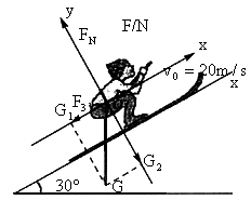 可先分析滑雪人在斜坡上的运动情况.初速度为 20m/s,末速度为零,运动时间为3.8s,则根据匀变速直线运动的公式,可以求得加速度a.再根据牛顿第二定律,由已知的加速度a,求出物体受到的阻力.解:如图建立坐标系,以