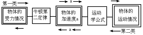 = -400N+420.8N=20.8N,方向沿斜面向下.根据物体的运动情况,由牛顿运动定律,就可推知物体的受力情况,牛顿正是根据前人的研究工作获得月亮、行星的运动情况,从而发现了万有引力定律. 重点归纳:已知物体的运动情况,求出物体所受的未知力.求解此类题的思路是:根据物体的运动情况,利用动力学公式求出加速度,再根据牛顿第二定律就可以确定物体所受的合力,从而求得未知的力,或与力相关的某些量,如动摩擦因数、劲度系数、力的角度等. 方法提炼: (1)求解上述两类问题的思路,可用下面的框图来表示.