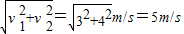 只有v1与v2垂直时合速度v=