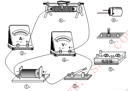 3.若上图中所给的电流表已被损坏,用剩余器材能否测定干电池的电动势和内阻?如能的话,请选定器材并给出电路图。