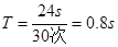 ,24s时间内完成30次全振动,一个周期经历的路程为4A=16cm,30个周期路程为4.8m,由![]()