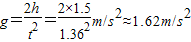 宇航员在月球表面做自由落体运动实验,从离月球表面1.5米高处,由静止释放一小球,测得下落时间为1.36秒,则月球表面的重力加速度约为 .