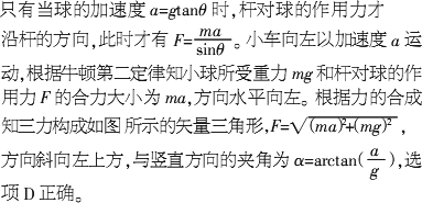 | C、小车向右以加速度a运动时,一定有F=ma/sinθ. | ||