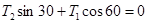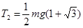 ②若小车以大小为g的加速度向右匀加速运动时,绳OA拉力 T1和绳OB拉力T2分别为多大?