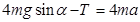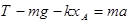 ⑵物体A刚刚离开地面时,以B为研究对象,物体B受到重力mg、弹簧的弹力kxA、细线的拉力T三个力的作用,设物体B的加速度为a,根据牛顿第二定律,对B有: