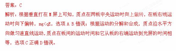 £¨2013°²»ÕÎÞΪËÄУÁª¿¼£©ÈçͼËùʾ£¬Á½Æ½ÐнðÊô°å¼äÓÐÒ»ÔÈÇ¿µç³¡£¬°å³¤ÎªL£¬°å¼ä¾àÀëΪd£¬ÔÚ°åÓÒ¶ËL´¦ÓÐÒ»ÊúÖ±·ÅÖõĹâÆÁM£¬Ò»´øµçºÉÁ¿Îªq£¬ÖÊÁ¿ÎªmµÄÖʵã´ÓÁ½°åÖÐÑëÉäÈë°å¼ä£¬×îºó´¹Ö±´òÔÚMÆÁÉÏ£¬ÔòÏÂÁнáÂÛÕýÈ·µÄÊÇ(¡¡¡¡)