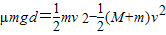 解答:解:由动量守恒定律得,设最终速度为v,有:mv=(M+m)v ①