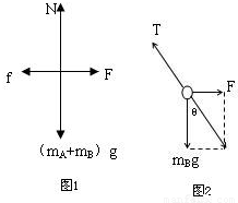 【答案】分析:以环A和球B整体为研究对象,分析支持力随着风力的增加如何变化,求解动摩擦因数.以B球为研究对象,分析球B受到的风力F和轻质绳对球B的拉力如何变化.