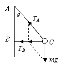 (2)小车向左的加速度增大,AB、BC绳方向不变,所以AC绳拉力不变,BC绳拉力变大,BC绳拉力最大时,小车向左的加速度最大,小球受力如图