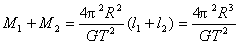 | 设两星质量分别为M1和M2,都绕连线上O点做周期为T的匀速圆周运动,星球1和星球2到O的距离分别为l1和l2.由万有引力定律和牛顿第二定律及几何条件可得