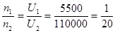 (10分)牛路岭水电站,一部机组装机容量为11000KW,发电机输出电压5500V,用一台升压变压器向某市供电,输送电压110kV,输电线总电阻为20Ω,到用户端再用一台降压变压器降到220V。变压器是理想的。求