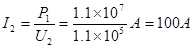输电线电压损失ΔU=I2R=100×20V=2000V (1分)