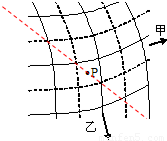 如图所示,甲、乙两相互垂直传播的振动情况完全相同的波,实线表示波峰,虚线表示波谷,箭头表示波的传播方向,则图中p点(小正方形的中央一点)所处位置应在( )A.振动增强点