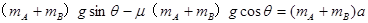 £¨1£©µ±AºÍBÓëÐ±Ãæ¼äµÄ¶¯Ä¦²ÁÒòÊýΪ¦Ì£½0.2ʱ£¬Á½¸öÎïÌåµÄ¼ÓËٶȼ°ÉþµÄÕÅÁ¦¸÷ÊǶàÉÙ£¿