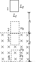 ÈçͼËùʾ£¬Ë®Æ½µÄƽÐÐÐéÏß¼ä¾àΪd£¬Æä¼äÓдŸÐӦǿ¶ÈΪBµÄÔÈÇ¿´Å³¡¡£Ò»¸ö³¤·½ÐÎÏßȦµÄ±ß³¤·Ö±ðΪL1¡¢L2£¬ÇÒL2£¼d£¬ÏßȦÖÊÁ¿m£¬µç×èΪR¡£ÏÖ½«ÏßȦÓɾ²Ö¹ÊÍ·Å£¬²âµÃµ±ÏßȦµÄϱßÔµµ½´Å³¡ÉϱßÔµµÄ¾àÀëΪhʱ£¬ÆäϱßÔµ¸Õ½øÈë´Å³¡ºÍϱßÔµ¸Õ´©³ö´Å³¡Ê±µÄËÙ¶ÈÇ¡ºÃÏàµÈ.Çó£º